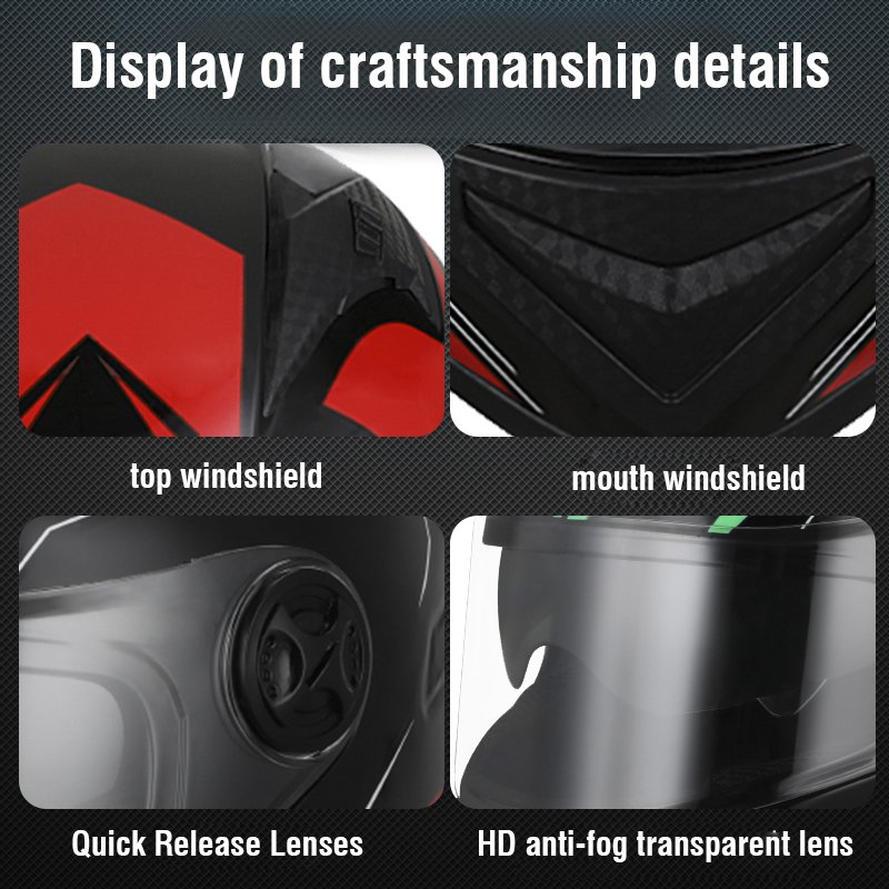 • Visor: Equipped with a clear or tinted visor that shields the eyes from wind, debris, and UV rays.
